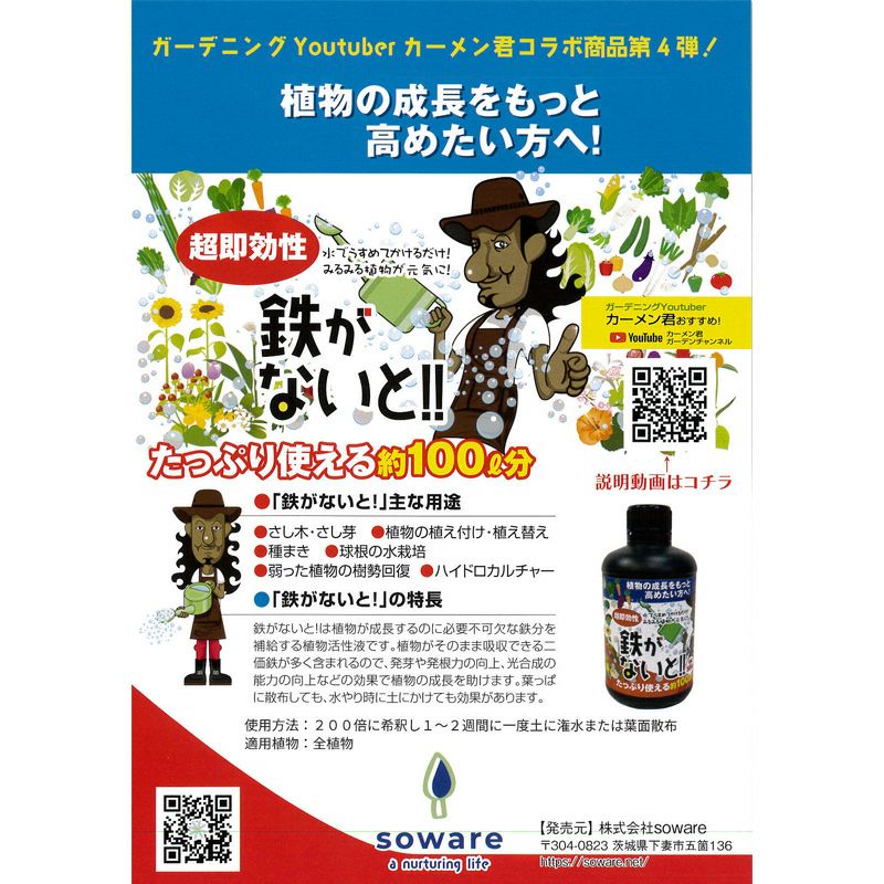 他の画像を見る 菌の黒汁≪光合成細菌≫ 販売価格 ¥ 2,290 税込 バラ用土壌改良材です。バラの生長促進のために土に散布することで、土中の善玉菌を増やし有機物を速やかに分解するので土がふかふかに。「木紅木キクノール」や「ばらキトサン液」と混ぜてバラに散布することでより効きが良くなります。 カートに入れる お気に入りに登録する