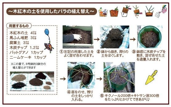 他の画像を見る 木紅木のバラの土12L×2袋セット 販売価格 ¥ 2,860 税込 バラ苗の植え付け・植え替えがこれだけでできます。『木紅木の馬ふん堆肥』『樹木土』『木炭チップ』 『黒土』『バットグアノ』他有効成分配合 カートに入れる お気に入りに登録する