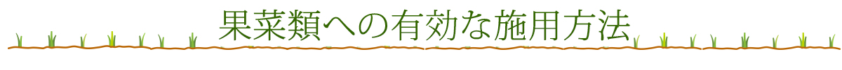 長期間にわたって収穫する成り物の野菜では、定植前の土壌処理を30倍でした後、生育中・収穫中も月2~3回の株元土壌灌水をすることによって、根の土壌環境がよくなるので、作物の色・形・サイズが揃ってきます